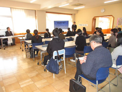 - 県内各地の幼稚園・保育園,小中高,養護学校,特別支援学校と様々な教育機関の方から総計119名が参加しました。午前は貴重提案,実践発表を行い,午後はAコース,Bコースに分かれて研修を行いました。